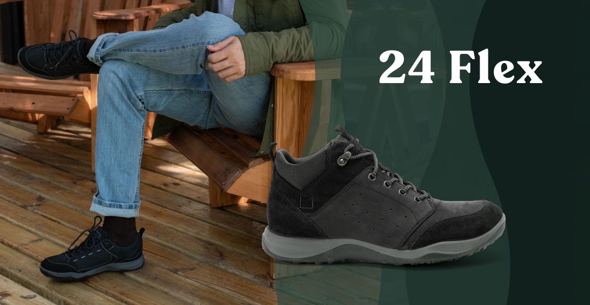 24 FLEX: La tecnología que debes elegir para tus nuevos zapatos. Combinación de planta de goma latex, material ultra flexible que reduce y amortigua el impacto al caminar, dando una sensación de descanso en cada paso.